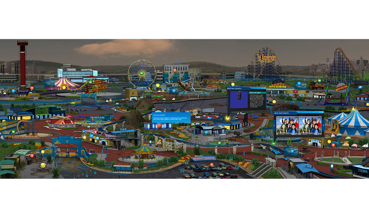 INTEL World Interactive 6 Screen Wall - Inhance Digital - I worked on Banners and Rides Names
